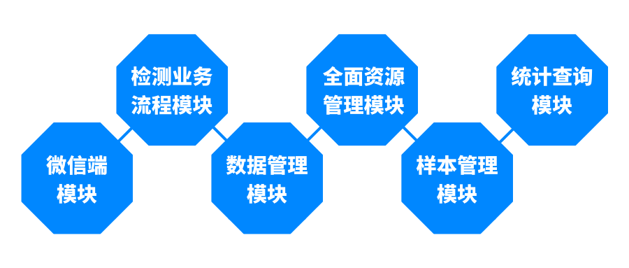 SW-LIMS項目功能包括微信端模塊、檢測業務流程模塊、數據管理模塊、全面資源管理模塊、樣本管理模塊和統計查詢模塊等。通過SW-LIMS系統的使用,實現工作流程的自動化,大大減輕人力手工勞動量,能從根本上把工作人員從繁瑣的任務中解放出來,人力資源從而不受局限并得以更好地調配。