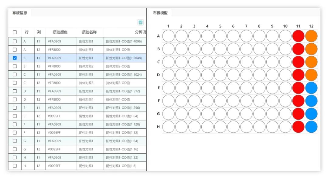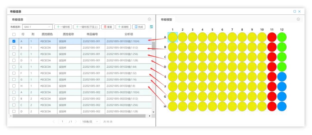 SW-LIMS為了在同一個布板中實現在同一個反應板顯示不同的樣品,特別引入按照樣品布板及待布板的分析項設計思路。以此,布板中不在僅僅是樣品,而是樣品需要檢測的參數。通過預先設計的布板模型將所需的對照樣事先布好,并預設樣品及待測參數在板中的走向,以省去每次布板時手動添加質控樣的時間和操作次數,同時事先設置好待測參數的排列順序。