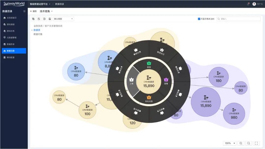 二、元數據驅動的數據目錄。數據目錄、數據地圖全面升級,通過對各類主動元數據的自動感知、自動化血緣的計算與感知,以及數據特征計算、數據資產關鍵運營指標的計算與分析、實時分析監控數據的各類運營狀態信息,形成360°全域、動態、實時的資產全景視圖,讓用戶以另外一種方式看數據,全方面掌握數據資產的動態變化,更好地保障企業數據治理的正常開展。