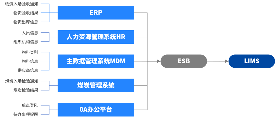 為了使質量檢驗數據能夠在企業內各部門業務系統間實現高效共享,三維天地將LIMS通過ESB技術模式與5個現有業務系統進行了集成,極大提升了數據傳遞效率,減少了人員工作負擔,打破了業務系統繁多導致的“信息孤島”的現象。通過對業務數據進行統一整合傳輸,使業務數據能夠高效共享,服務于企業管理。