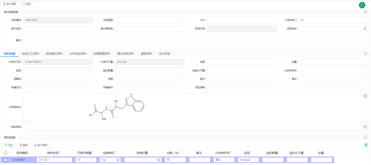 此外還支持管理注冊的化合物庫存存量信息、批次信息,在后續實驗過程中可直接引入使用。