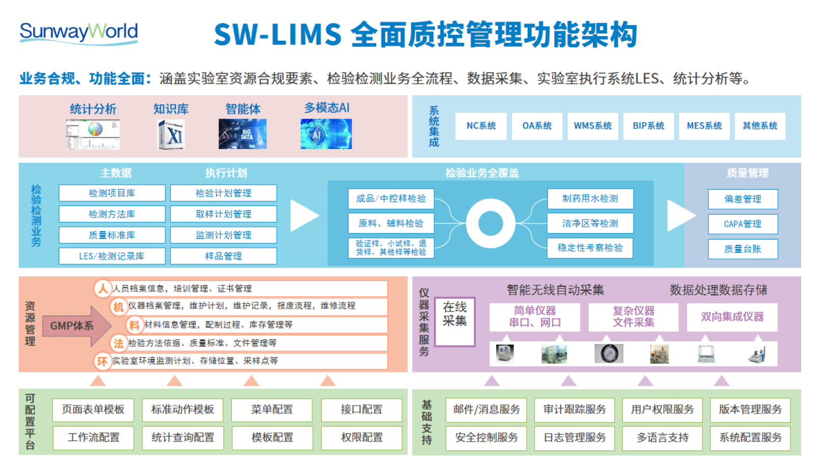 研發(fā)一體化平臺(tái)包含了:研發(fā)產(chǎn)品生命周期管理系統(tǒng)(PLM)、科研項(xiàng)目管理系統(tǒng)(RDMS)、科研過程記錄管理(ELN/LES)、臨床前研究合規(guī)系統(tǒng)(GLP)、臨床研究管理系統(tǒng)(GCP)、質(zhì)控實(shí)驗(yàn)室信息管理系統(tǒng)(LIMS)、科學(xué)數(shù)據(jù)管理系統(tǒng)(SDMS)、質(zhì)量管理系統(tǒng)、AI應(yīng)用平臺(tái)(SunwayLink)等。以下是主要軟件功能簡(jiǎn)介: