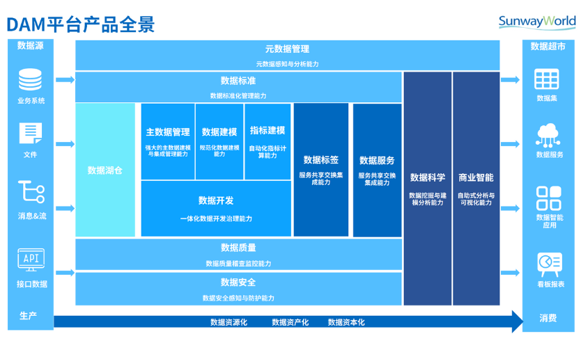 DAM V13 以“數(shù)據(jù)資產(chǎn)價(jià)值釋放”為核心目標(biāo),涵蓋數(shù)據(jù)目錄、數(shù)據(jù)標(biāo)準(zhǔn)、數(shù)據(jù)質(zhì)量、數(shù)據(jù)安全、數(shù)據(jù)開(kāi)發(fā)、主數(shù)據(jù)建模、數(shù)據(jù)建模、指標(biāo)建模、數(shù)據(jù)標(biāo)簽、AI人工智能、BI商業(yè)智能、數(shù)據(jù)超市等13大模塊,建立數(shù)據(jù)治理、開(kāi)發(fā)、應(yīng)用的完整閉環(huán),提供全鏈路的數(shù)據(jù)資產(chǎn)管理能力,解決企業(yè)中關(guān)鍵核心數(shù)據(jù)不可信、不可用、數(shù)據(jù)價(jià)值無(wú)法釋放等痛點(diǎn)問(wèn)題。